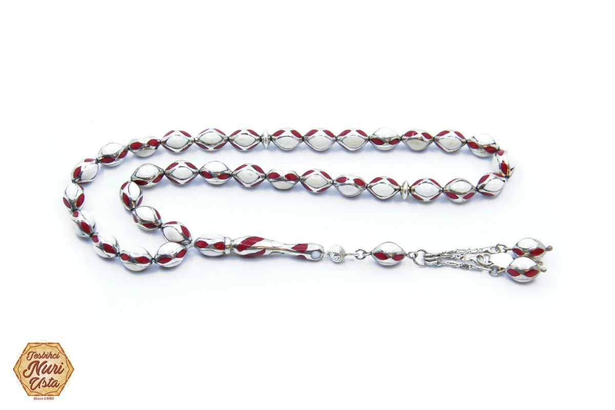 ORJİNAL FİL DİŞİ VE MERCAN USTA İŞİ KOLLEKSİYONLUK TESBİH.