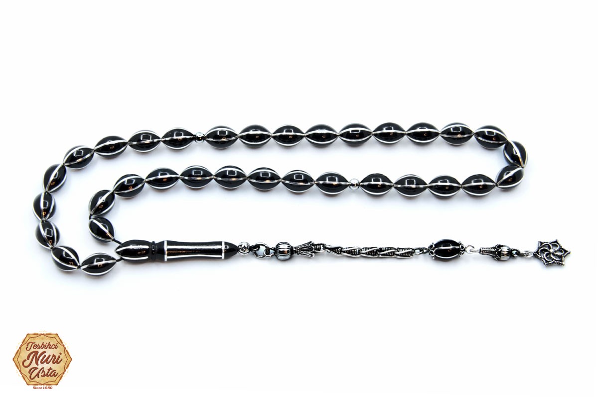 PÜSKÜLÜ 925 GÜMÜŞ, KARPUZ DİLİMLİ İŞLEME ERZURUM OLTU TAŞI TESBİH